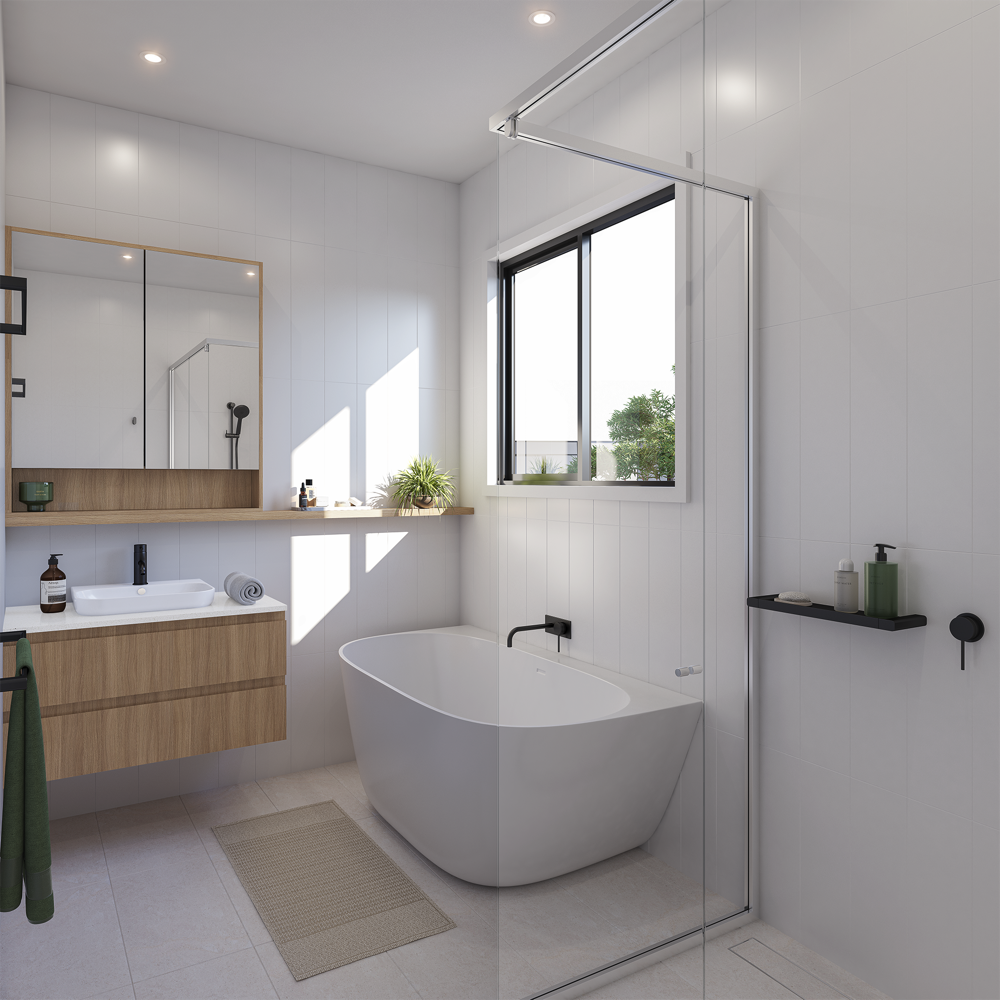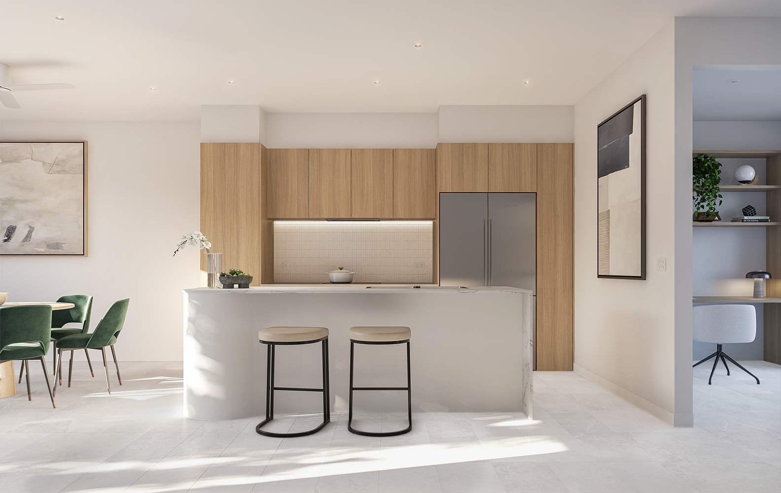 Benchtop material: On 13 December 2023 the Commonwealth and State WHS Ministers announced an intention to ban all engineered stone nationally with effect from 1 July 2024. Alternatives to engineered stone which meet Mirvac’s required quality and design standards are currently being investigated. As such the benchtop material has yet to be determined and once determined will be different from that shown in the render.