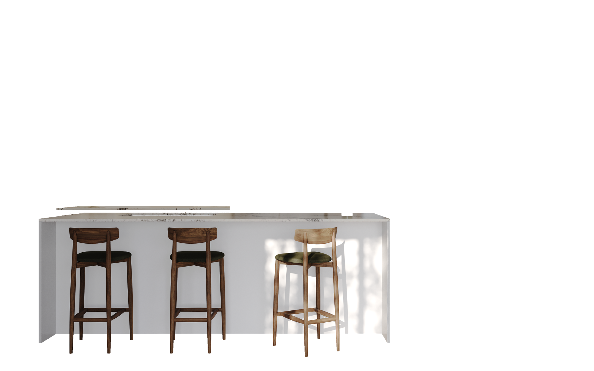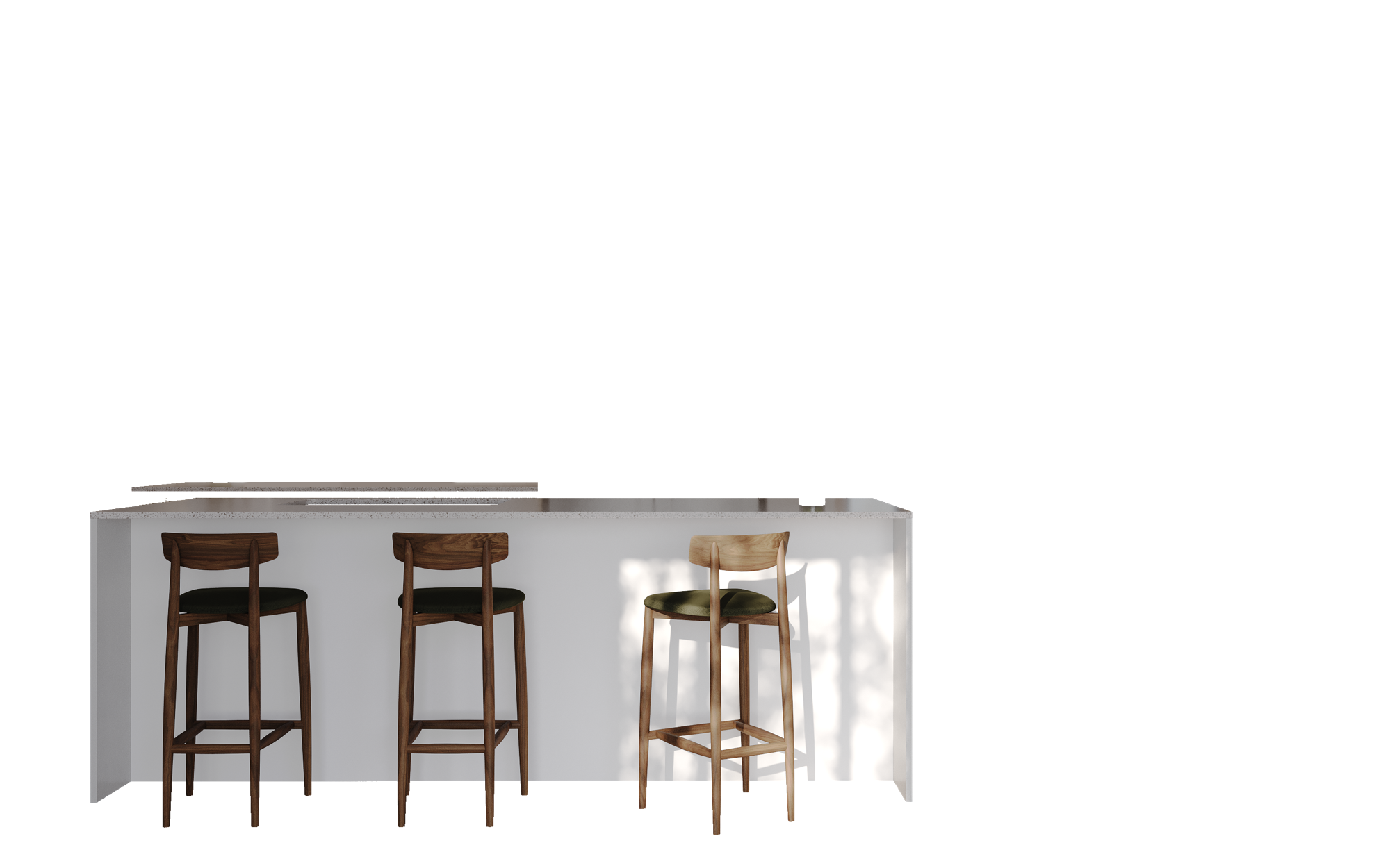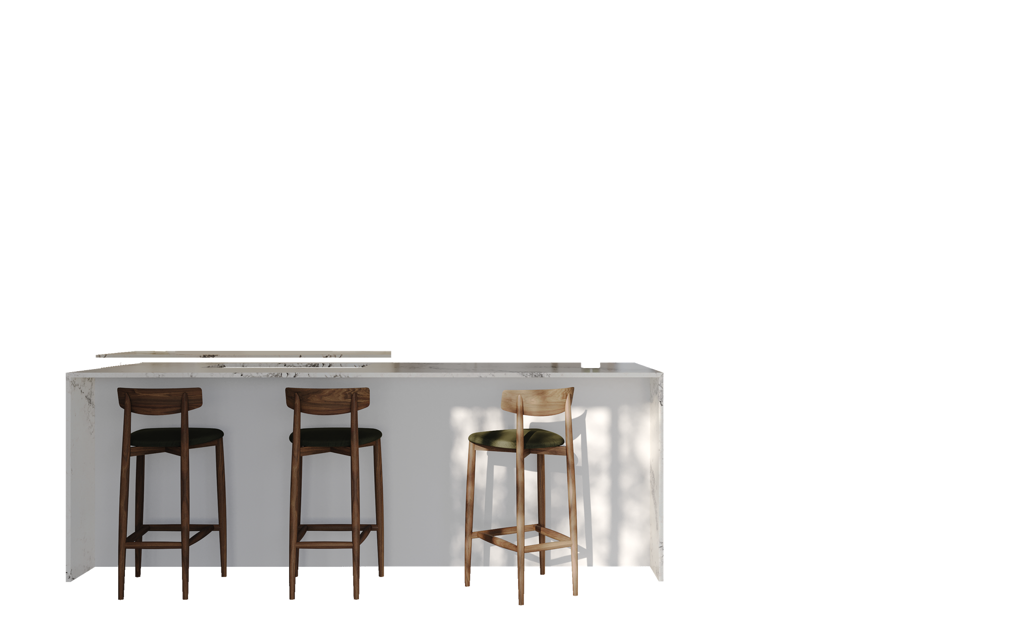 Feature curved island benchtop with x1 waterfall end with upgraded supernatural mineral stone.