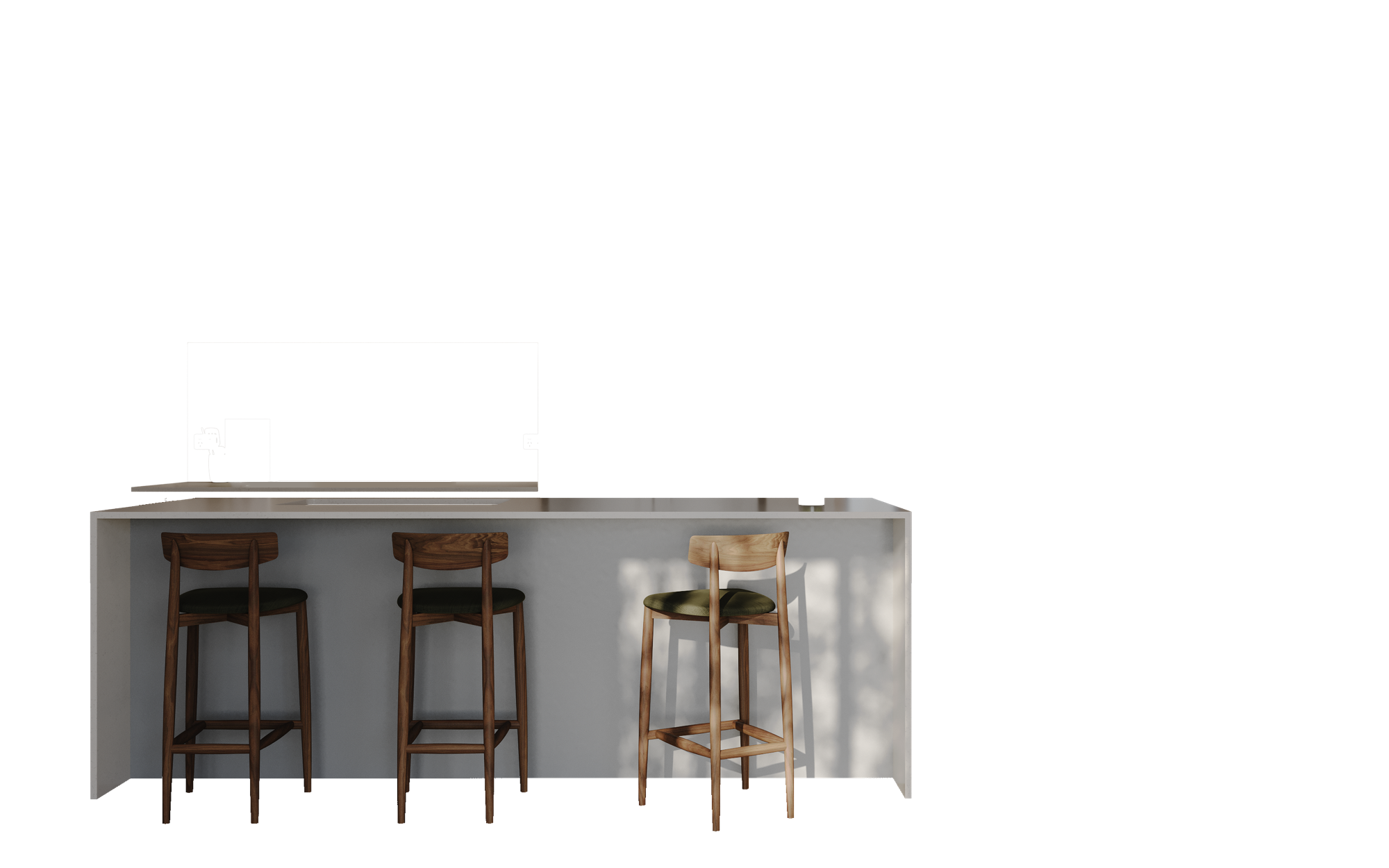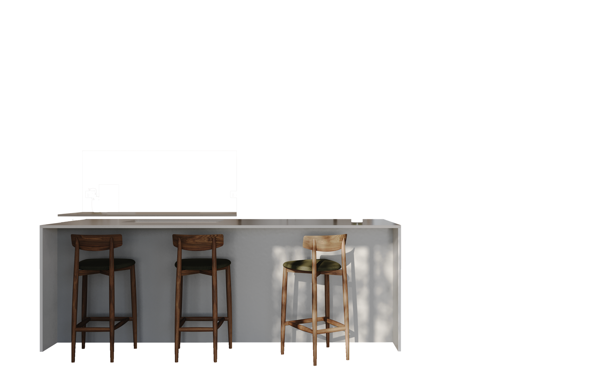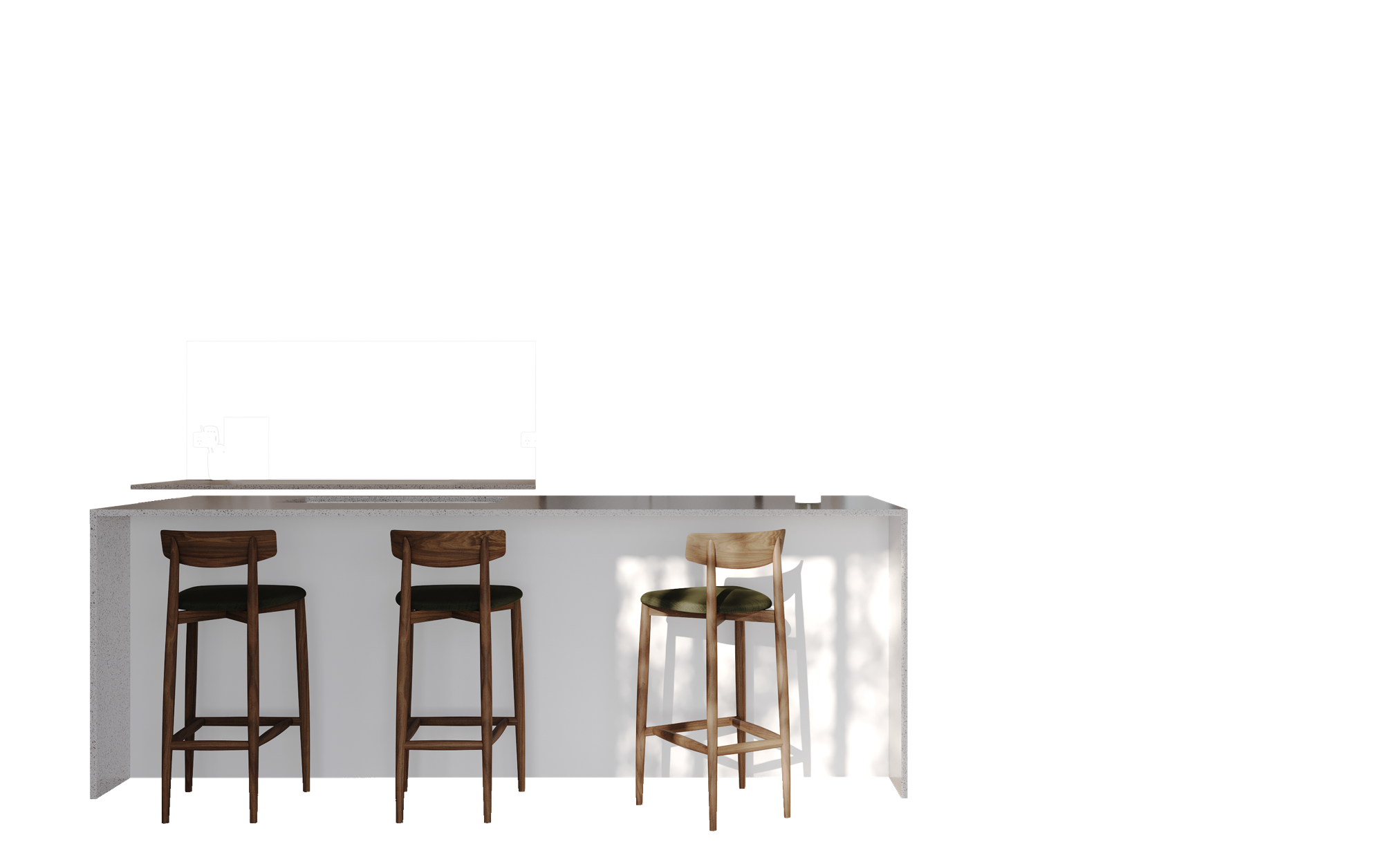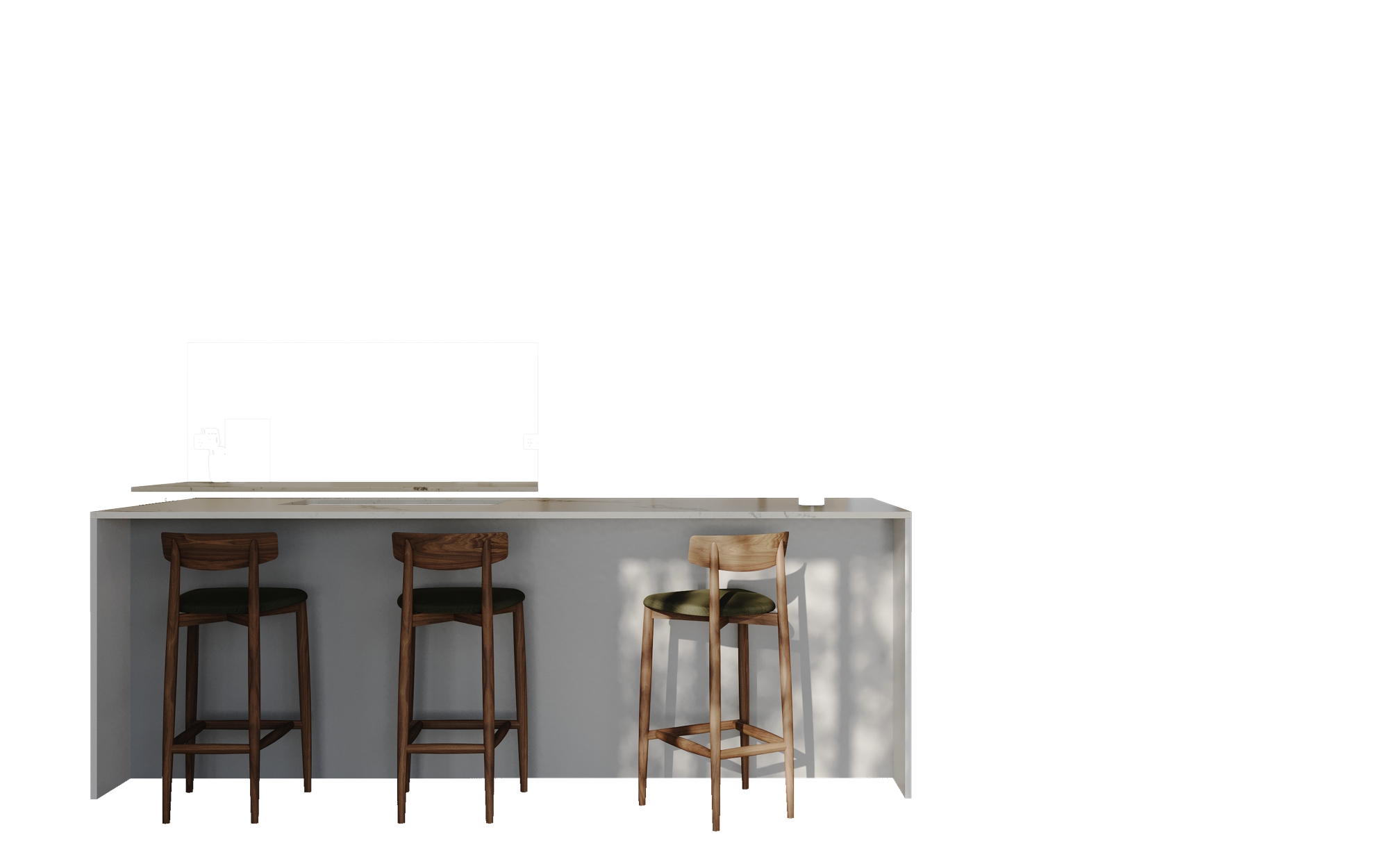 Feature curved island benchtop with x1 waterfall end with upgraded supernatural mineral stone.